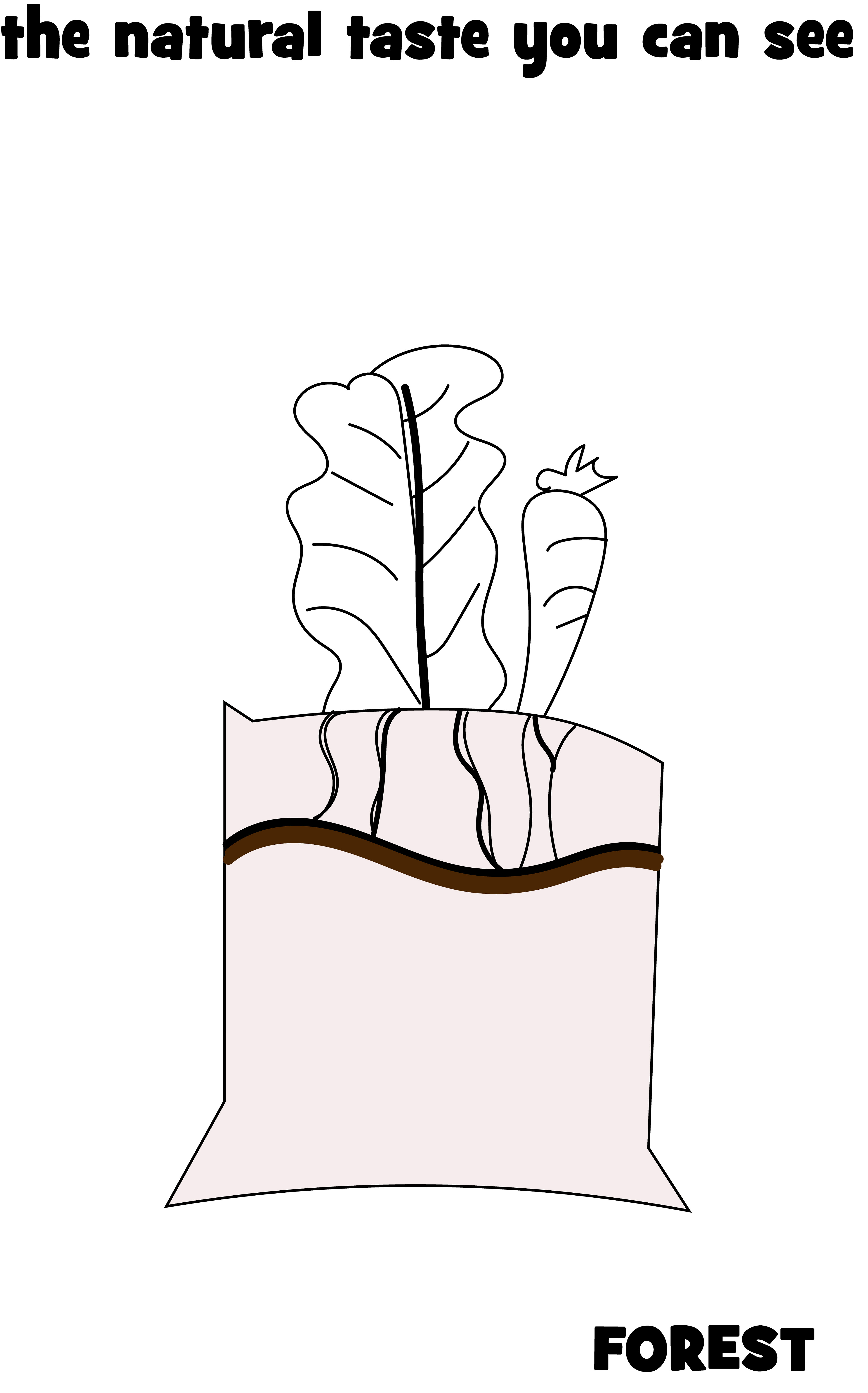 These scamps show you visually where the vegetarian snacks come from. These scamps focus on describing the natural ingredients to address customers' concerns about a healthy diet. The concept of these 3 scamps is to speak out that Forest provides green snacks that belong to nature